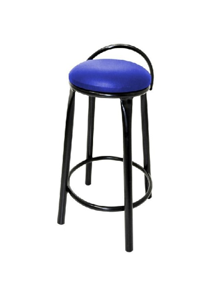Banqueta alta com assento estofado e apoio traseiro meia lua.