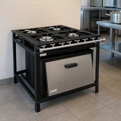Fogão Industrial prático e econômico para uso. Possui eficiência em seu forno, proporcionando melhores resultados em seus pratos. Praticidade em movimentação devido ao suas dimensões, podendo ser utilizados em restaurantes, lanchonetes ou até mesmo em chácaras (lugares para eventos). Outro ponto forte é sua durabilidade, sendo produto de maior duração aos demais concorrentes.